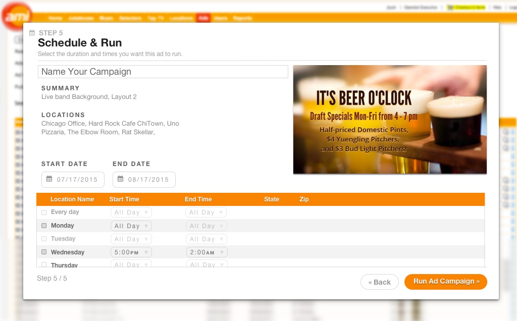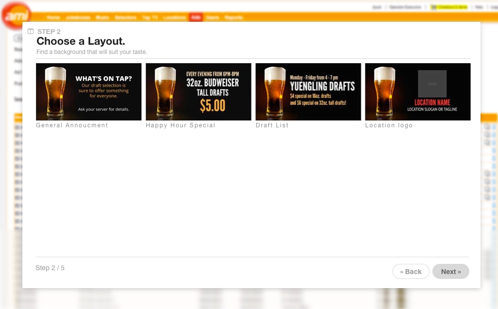 With Both Tap TV and Our Music Video Jukeboxes now occupying televisions in the locations. We wanted to offer venues the ability to quickly create and run self promotional ads.